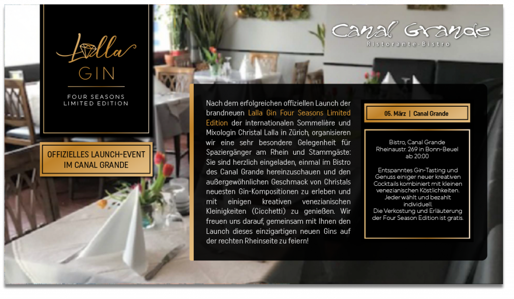 Lalla Gin 4 Seasons Launch | Canal Grande Bistro, Bonn