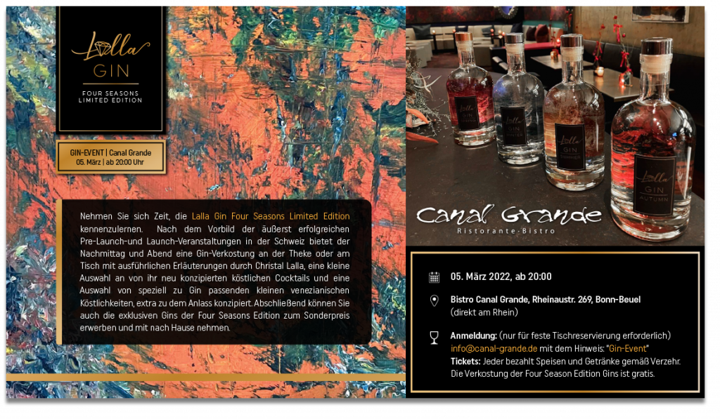» Lalla Gin 4 Seasons Launch | Canal Grande Bistro, Bonn
