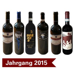 With a focus on the vintage 2015: 1 or 2 bottles each of Brunello di Montalcino from Cava d’Onice, Colombaio, Paradiso di Frassina and Il Cocco as well as Rosso di Montalcino 2018 from Cava d’Onice und Paradiso di Frassina.