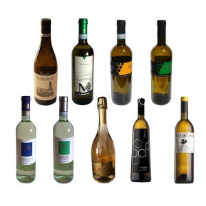 1 or 2 bottles each of Favorita, Roero Arneis, Assobianco, Pinot Grigio, Manzoni, Davide Due, Vino do Avo, Sameiras and Merlot Rosé Spumante.