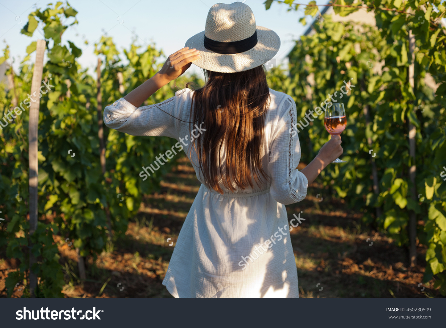 stock-photo-portrait-of-a-gorgeous-brunette-woman-having-wine-fun-in-the-vineyards-450230509